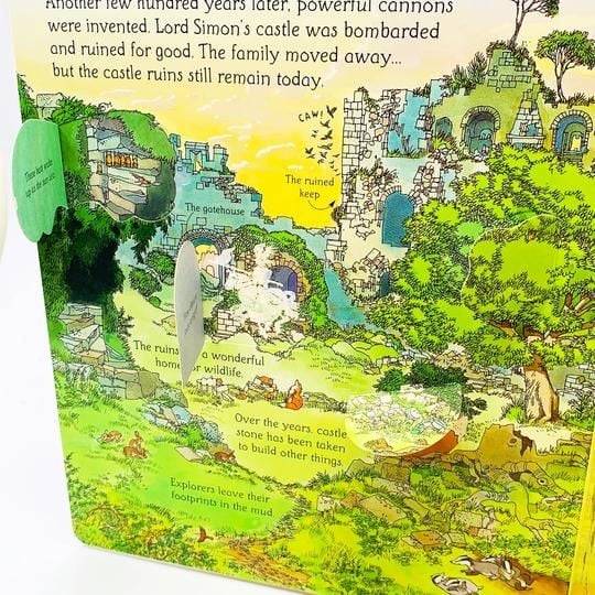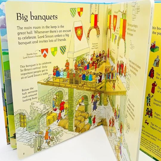 Bao gồm hơn 50 miếng lật giở, độc giả sẽ được hòa mình vào cuộc sống trong tòa lâu đài đồ sộ và lịch sử lâu năm: từ những cuộc săn bắn, căn phòng bếp hay gặp gỡ các chàng hiệp sĩ mà lâu nay ta mới chỉ nghe qua các câu chuyện của bà, mẹ.